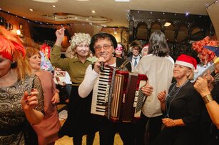 & Большой опыт и умение подстроиться под любую аудиторию, интеллигентное и ненавязчивое ведение программы, где гостей не "вытаскивают" на конкурсы.